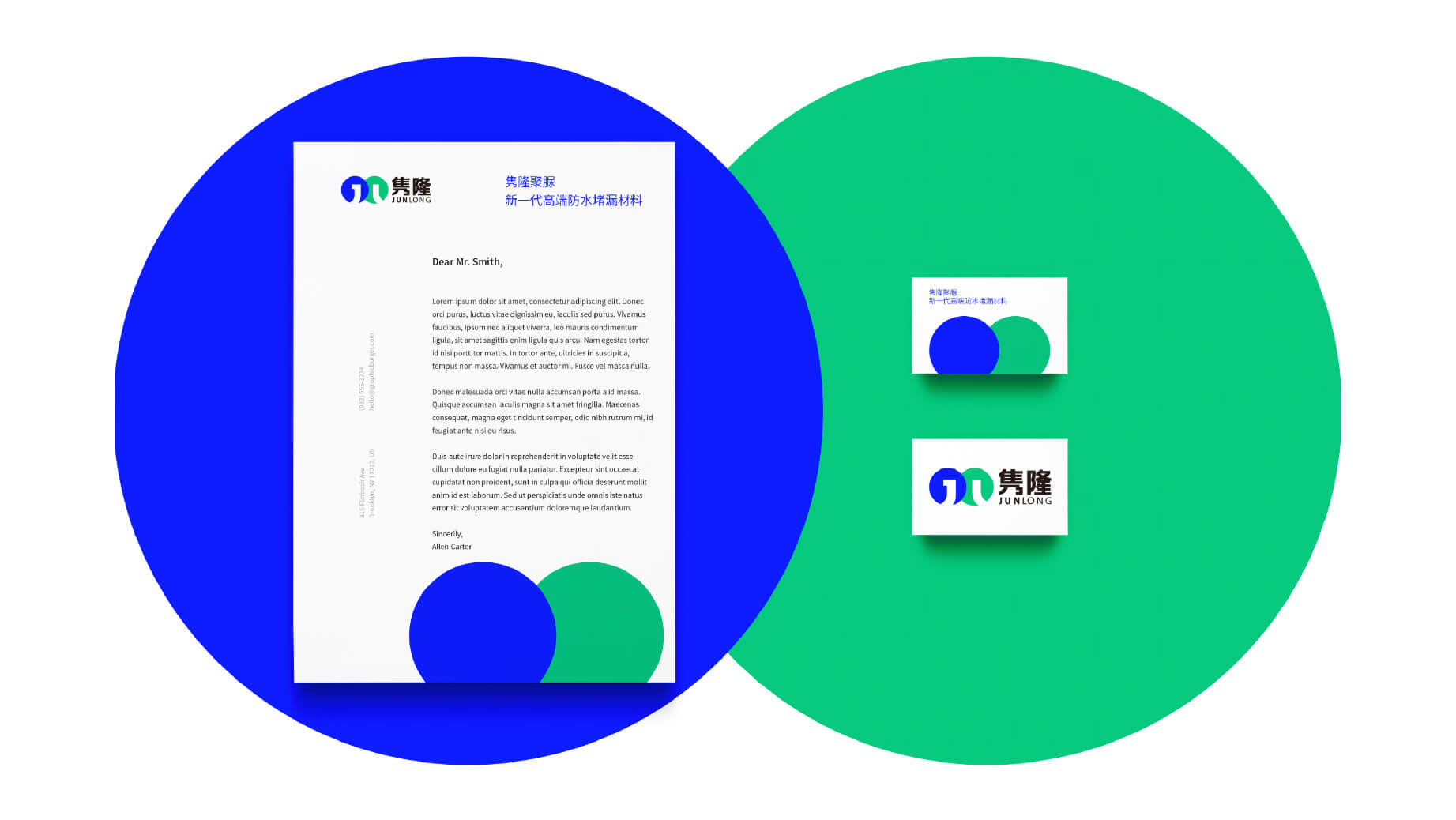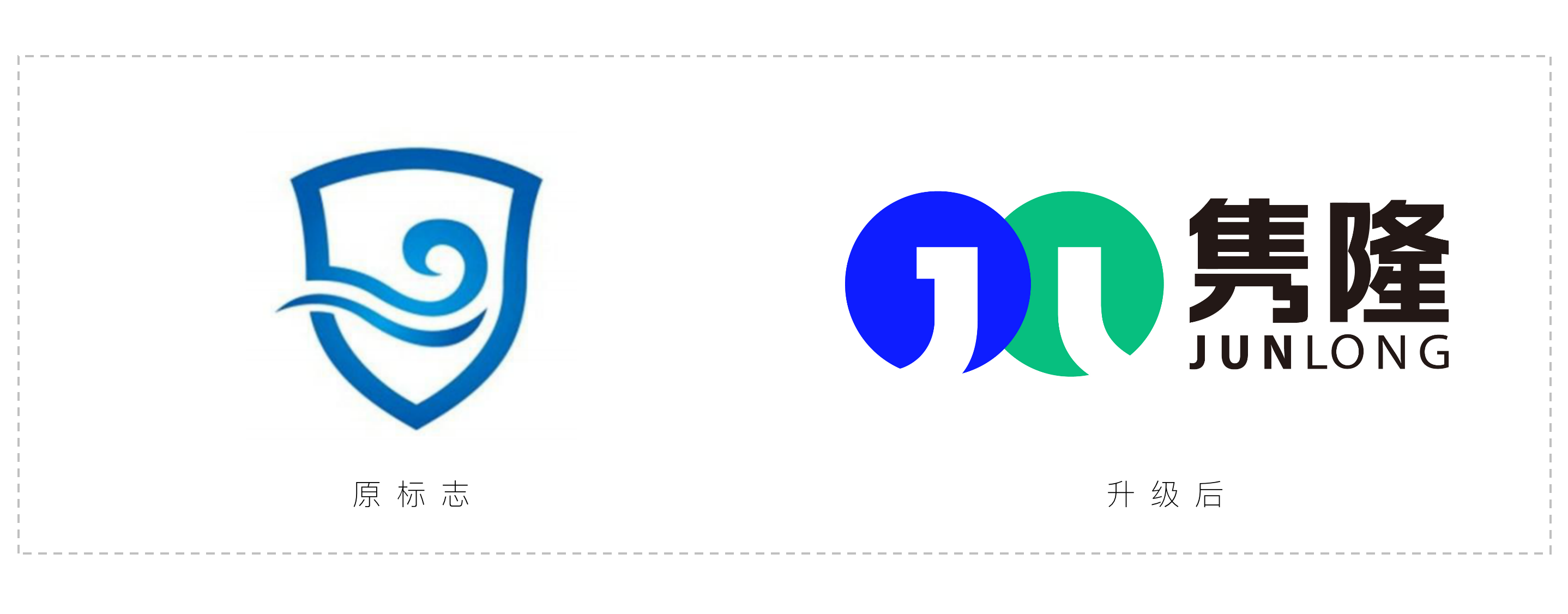 但字母标志设计要有策略性,不能随随便便设计一个字母。隽隆的标志需要区分新材料和老材料,彰显新技术,从视觉识别上就要拉开差异。