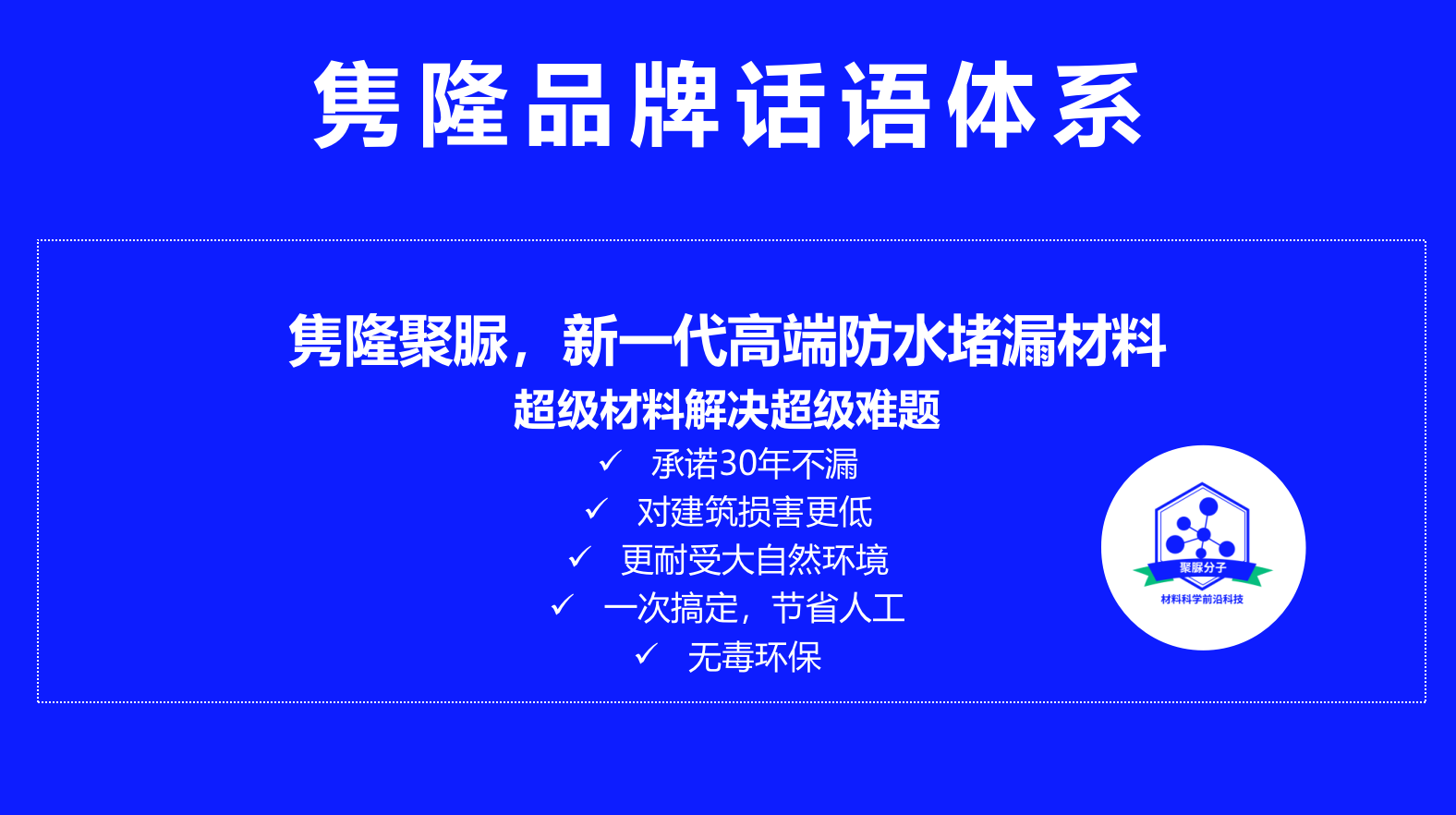 隽隆是一家防水材料和工程公司,核心业务是聚脲材料和防水工程施工,是聚脲材料的头部梯队企业。需要我们咨询的业务是聚脲材料业务。隽隆丁总希望我们帮助聚脲业务做品牌战略。