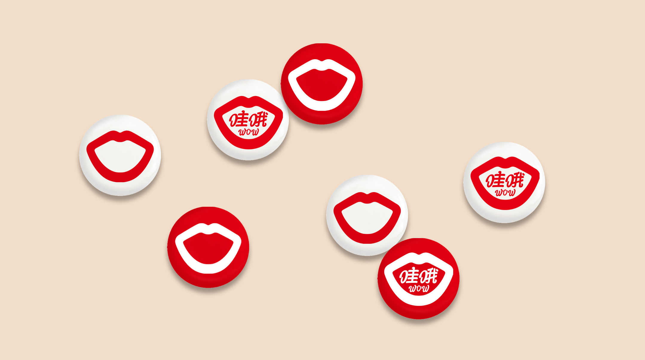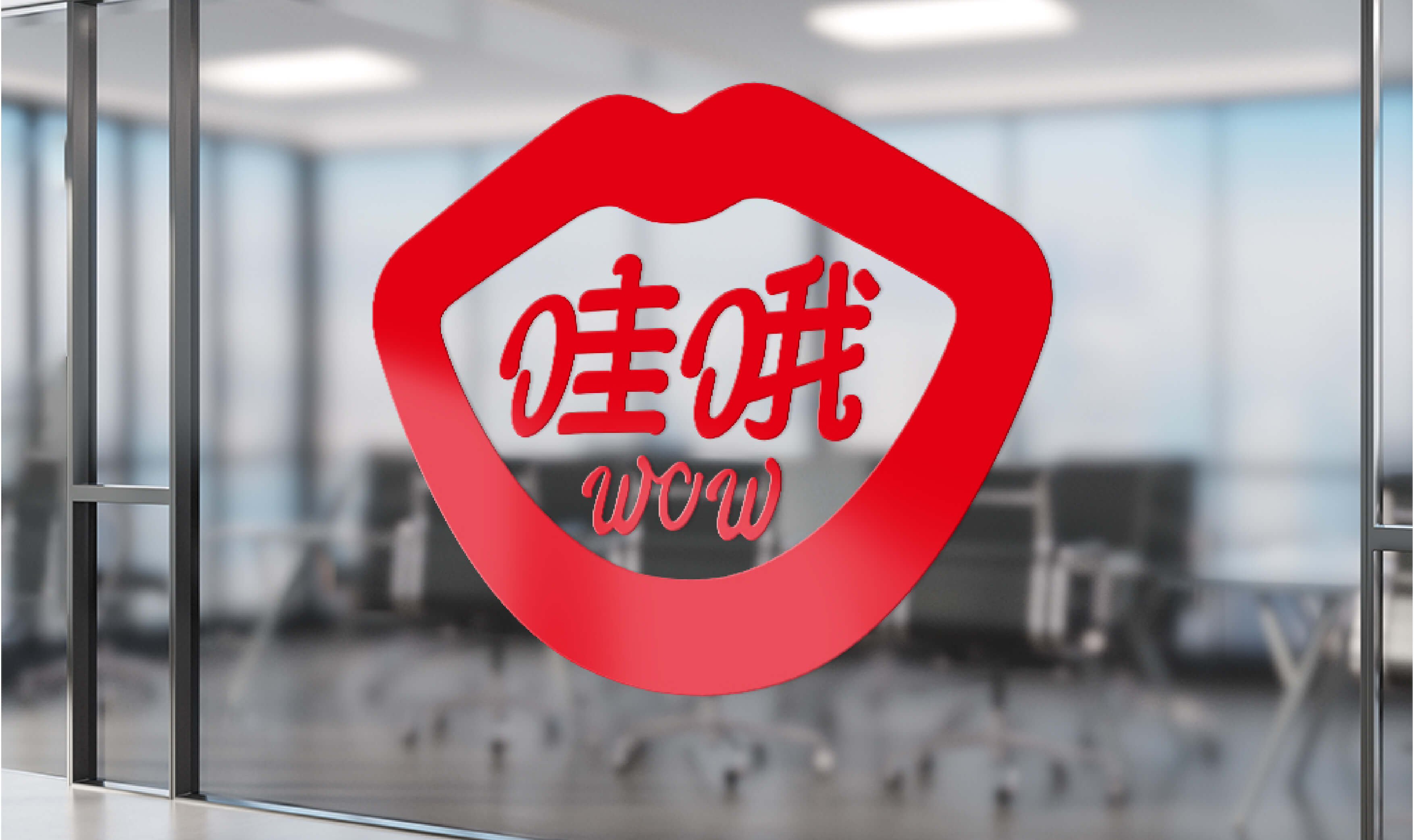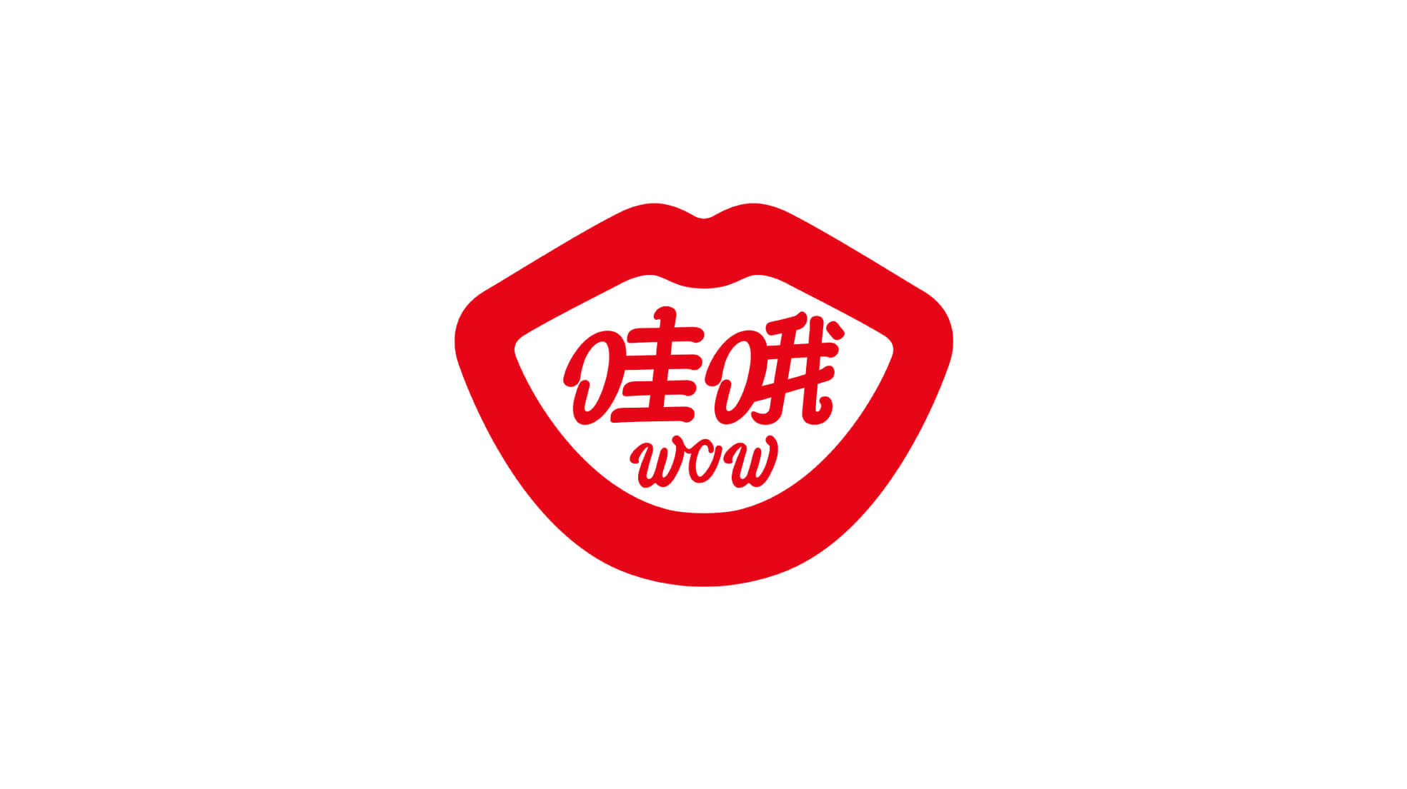 我们提炼了每个人说哇哦时候的嘴型,重新优化了文字,加上了英文组合,放在全世界,这个标志一看就懂。