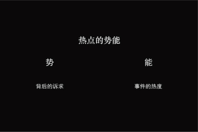 一个热点之所以被普遍大众关注,背后就有被大众共同认同的内在诉求,这个引起大众关注和共鸣的东西就是真正的“势”,而热度的传播力就是“能”。