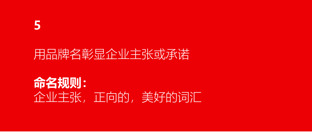 第五类品牌名命名套路:企业主张-正向的、美好的词汇或字的组合。